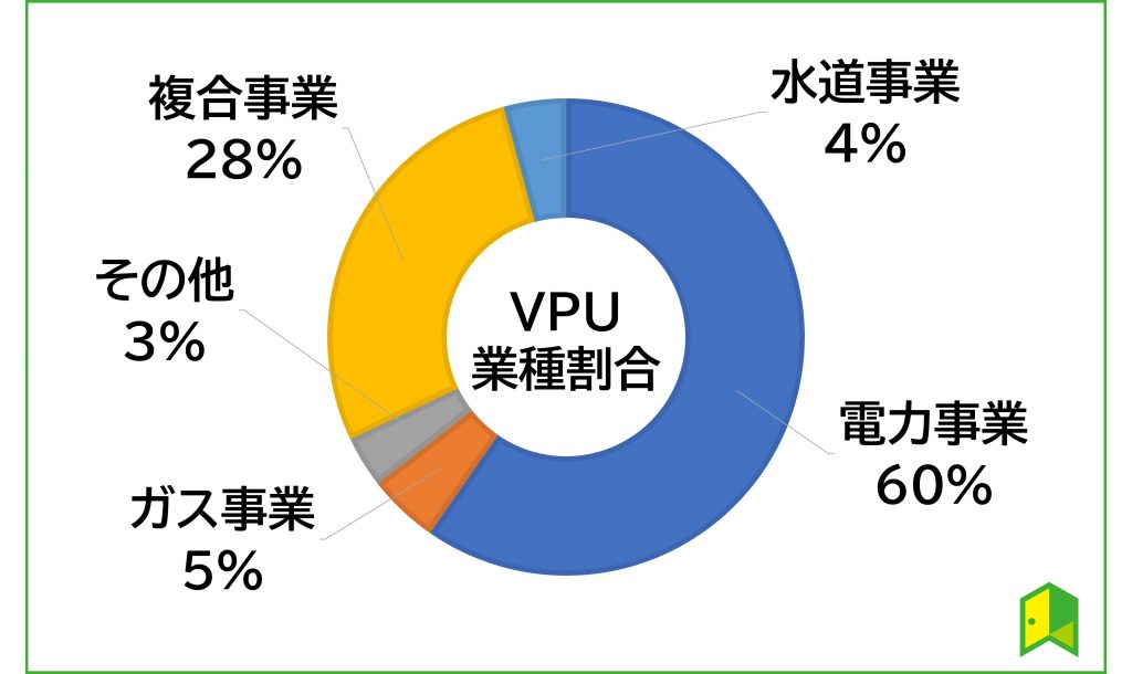 VPUは米国公益事業セクターの銘柄で構成されており、各業種の割合は以下の通りです。