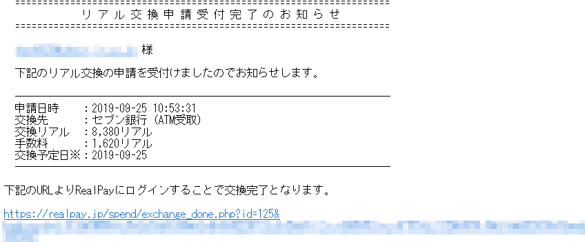 メールに書かれてあるURLをクリックすると、リアルの交換が完了します