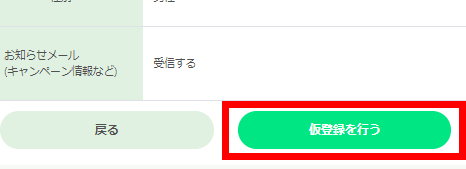 ご入力内容の確認の上、『仮登録を行う』をクリックします
