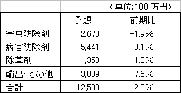 ![]() 主要商品である土壌処理剤(区分は病害防除剤)「バスアミド」、「D-D92」、害虫防除剤「アルバリン剤」、「ペンタック水和剤」、「バイスロイドEW」の販売が好調に推移しました。 <セグメント別動向>