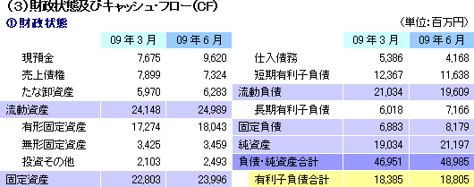 原油高の影響で大型車向けの生産調整が始まっていたため、米GM破綻の影響は想定より少ない見込み。自動車向け以外では、新型インフルエンザの判定装置やマイナスイオンのエアコン等の用途拡大が期待できる。