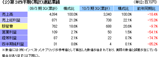 ![]() 前年同期比18.4%の減収、同74.7%の経常減益