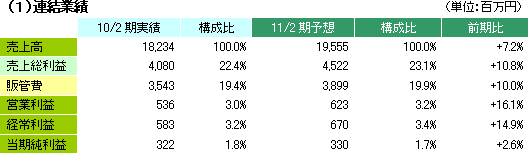 ![]() ![]() ![]() ![]() 11/2期は減価償却費の増加で営業損失が見込まれるものの、売上高は20.8%増加する。 ![]() |