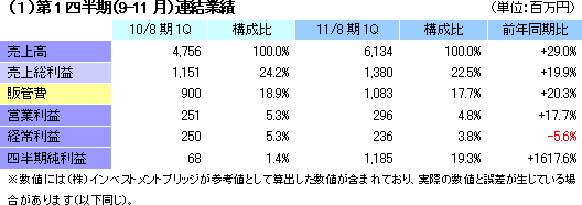 ![]() 前年同期比29.0%の増収、同5.6%の経常減益