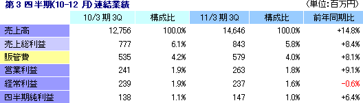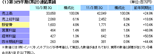![]() 前年同期比24.9%の増収、同50.5%の経常増益