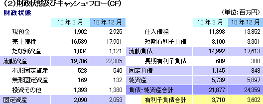 上期決算発表と共に上方修正された通期業績予想に変更は無く、「長期的なデフレや円高等、引き続き厳しい経済情勢で今後の見通しは不透明ではあるものの、第3四半期までの業績は順調に推移している」と説明している。配当は1株当たり7円の期末配当を予定(上期末配当と合わせて年13円)。