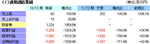 ![]() 通期業績予想に変更は無く、1433百万円の経常損失見込み(同1002百万円の損失)