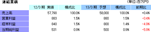 ![]() 前期比0.4%の増収、同4.9%の経常減益予想