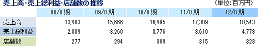 売上高は前期比6.6%増の185億43百万円、セグメント利益は同18.6%増の26億92百万円。新たに13店舗(前期:15店舗)を出店する一方、5店舗(同9店舗)を閉鎖した結果、期末店舗数は前期末比8店舗増の323店舗。