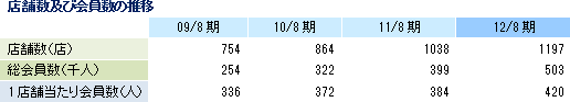 売上高は前期比34.3%増の113億20百万円、セグメント利益は同57.6%増の19億6百万円。期末店舗数は前期末比159店舗増(15.3%増)の1,197店舗(内グループ直営店42店舗)、会員数は104千人増(25.9%増)の503千人。閉店店舗はわずか1店舗にとどまった。