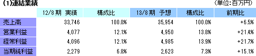 | 2013年8月期業績予想 |