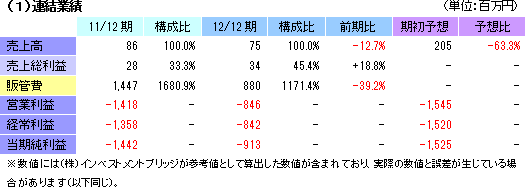 ![]() 前期比12.7%の減収、842百万円の経常損失(前期は1,358百万円の損失)