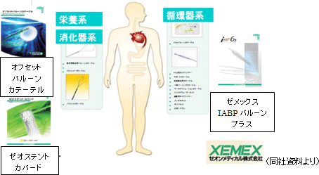 消化器系製品では、胆道結石除去用の差別化製品である「オフセットバルーンカテーテル」、国産初の胆管カバードステント「ゼオステントカバード」、また循環器系製品では、心筋梗塞時等に心臓の拍動を補助するデバイスとして、世界最細径の「ゼメックス IABPバルーンプラス」など、豊富な開発実績を有している。 ![]() 同社の開発製品であるゼメックスクラッシャーカテーテル・バスケットカテーテルNT・バルーンカテーテルなど、巨大結石から胆泥・胆砂まであらゆる胆道結石を除去できるデバイスをラインアップしており、結石除去デバイス全体で50%のシェア獲得を目指す。 ④化学品事業