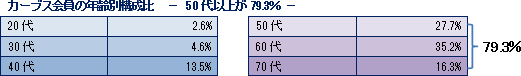 “女性専用30分健康体操教室”として順調に拡大しているカーブス事業も「既存業種新業態」の概念に沿ったもの。フィットネス自体は珍しくないが、ターゲットとする客層、施設等で従来のフィットネスとは一線を画しており、「アクティブシニア層」及び「地域密着」をキーワードに、買収後に同社が花開かせた(同事業では、50代以上の女性が会員数の79.3%を占めている)。