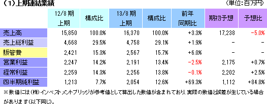 ![]() 前年同期比3.3%の増収、同0.1%の経常減益