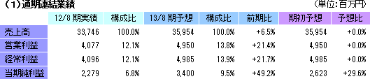 ![]() 通期予想は前期比6.5%の増収、同21.7%の経常増益