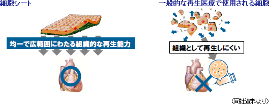 細胞シートは、生体組織・臓器の基本単位であり、「細胞外マトリックス」を保持しているため、縫合等の処置をする事無く患部に移植する事ができる。また、積層化が可能なため、3次元組織・臓器を構築できる可能性もある。