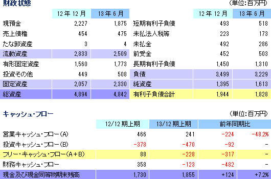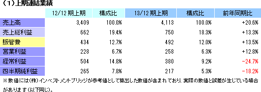 | 2013年12月期上期決算 |