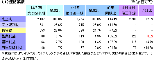 | 2014年3月期第2四半期決算 |