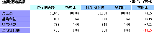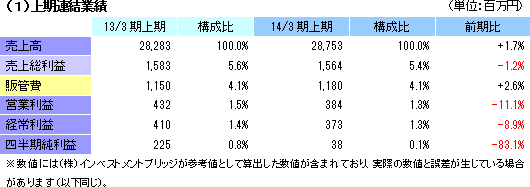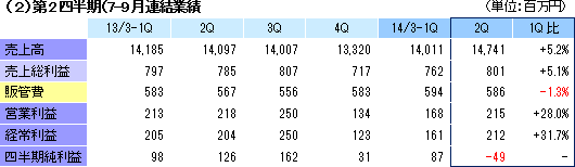 ![]() 前年同期比1.7%の増収、同8.9%の経常減益