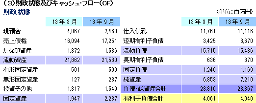 第2四半期(7-9月)の3ヶ月間では、第1四半期との比較で、5.2%の増収、31.7%の経常増益(前年同期比では、4.6%の増収、3.9%の経常増益)。国内外の連結子会社合計の売上が7億円弱増加した事に加え、個別(プラマテルズ単体)も12百万円の増収。子会社では、香港(3億62百万円増)、上海(1億42百万円増)、フィリピン(77百万円増)、大連(54百万円増)の寄与が大きかった。 ![]() ![]() ![]() |