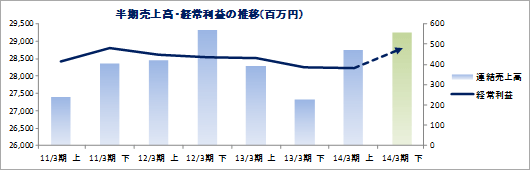 売上高は前期比4.3%増の580億円。国内売上の底打ちに加え、海外もアジアでの拠点開設効果が徐々に顕在化してくると見ている。営業利益は同6.4%増の8億70百万円。海外拠点の強化に向けた人材の確保と育成で先行投資負担が増加するものの、売上の増加と販管費の効率化で吸収する。 配当は、1株当たり上期末7円、期末8円の年15円を予定している。
