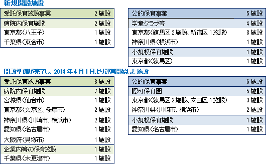 ![]() “待機児童解消”に寄与するべく、新規施設の開設を加速