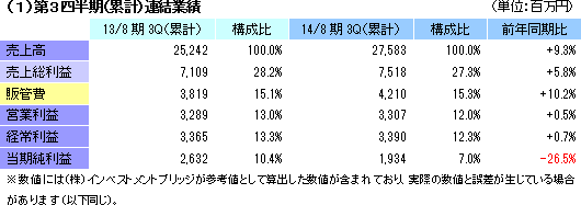 | 2014年8月期第3四半期決算 |