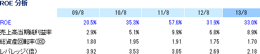 ![]() ![]() *ROE(自己資本利益率)は「売上高当期純利益率(当期純利益÷売上高)」、「総資産回転率(売上高÷総資産)」、「レバレッジ(総資産÷自己資本、自己資本比率の逆数)」の3要素を掛け合わせたものとなる。ROE = 売上高当期純利益率 × 総資産回転率 × レバレッジ