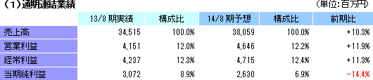 | 2014年8月期業績予想 |