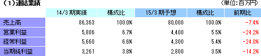 ![]() 前期比7.4%の減収、同24.0%の経常減益予想
