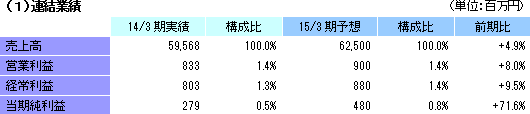 ![]() 前期比4.9%の増収、同9.5%の経常増益予想