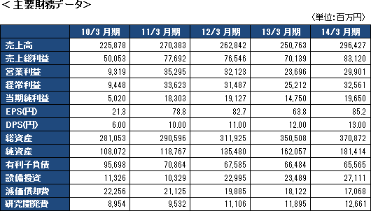 業績予想に変更は無い。売上高は前期比4.6%増の3,100億円。営業利益は同23.2%減の250億円。エラストマー素材部門では、海外市況が当初想定以上に悪化している。一方高機能材料部門では、前第4四半期に始まった中小型向け光学フィルムの調整が長引くと見ていたものの、現時点では予想以上の戻りとなっている。 通期予想に対する進捗は特に利益面で順調だが、エラストマー素材部門の市況が先行き不透明であること、中小型向けフィルムも第4四半期(1-3月)に弱含む可能性があることに加え、急速に進行している円安の影響についても、現時点では予想が難しいため、今回は修正を行わず、もう少し目途が立ってから再度検討するということだ。 配当は、1円増配の14円/株を計画。5期連続の増配を予定している。予想配当性向は18.7%。 |
