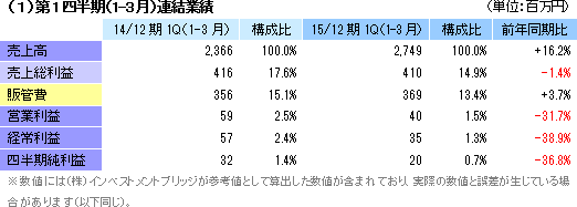 | 2015年12月期第1四半期決算 |