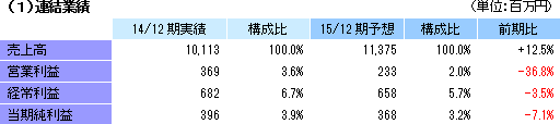 | 2015年12月期業績予想 |