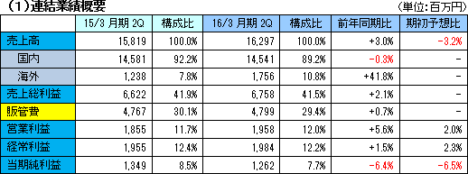 ![]() 微増収・微増益。国内横這いも海外売上が好調。