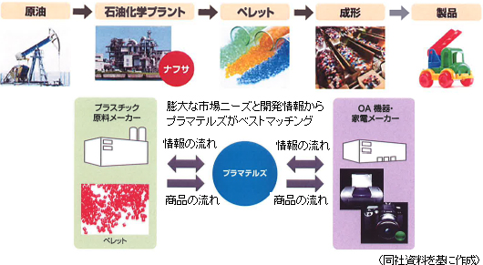 ①合成樹脂市場におけるメーカーとユーザーのベストマッチングを推進する役割を果たす
