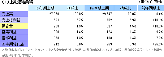 ![]() 前年同期比6.4%の増収、同7.9%の経常増益