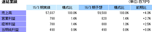 ![]() 前期比4.3%の増収、同2.5%の経常増益予想