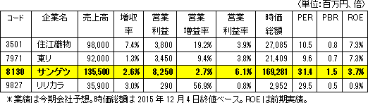 (2015年3月期 売上高 3,988百万円、営業利益 30百万円) ![]() 具体的には、「2014年度下期より最短3年間、最長5年間で自己資本の金額を2014年3月末比で100億円~200億円の圧縮を目指す。」ということであるが、2017~2019年度の目標としているROE 8~10%を達成するためには、資本政策の実施と同時に、売上高当期純利益率の一段の向上も必要となるだろう。 【特徴と強み】