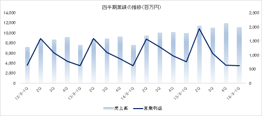 ![]() 通期業績予想に変更はなく、前期比12.1%の増収、同11.7%の経常増益予想