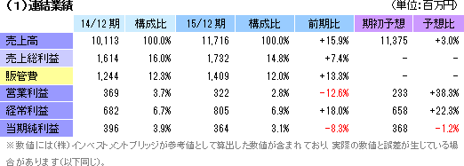 ![]() 前期比15.9%の増収、同18.0%の経常増益