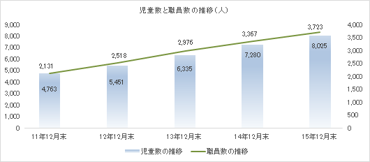 ![]() 待機児童の状況 保育所利用児童数は年々上昇も、待機児童数が増加傾向へ