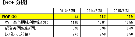 ○株主へ中期経営計画中の利益を100%還元信用力維持、中核事業の拡充、新規事業開発の原資として今後も必要十分な手元資金は維持していくが、すでに財務面の健全性は十分に備わったと判断しており、今後は、株主への還元を今まで以上にダイナミックに行うこととし、中期経営計画中の利益は100%株主に還元する。 具体的には下記の2施策を実行する。 A) 中期経営計画中の配当性向を特殊要因は除いて、従来の33.3%から50%に引き上げ、株主への安定的で高い配当利回りを目指す。 B) 税引後利益のうち、配当後残額のすべてを自己株式の取得・消却に充当し、利益の100%を株主に還元する。 現状保有する自己株式は売渡請求用の自己株式、株式給付信託「J-ESOP」等を除き消却し、新たに取得した自己株式は、用途を目標達成のためのストックオプション等に限定し、その他は消却する。 ○ROE目標15%(2016年6月期) 成長戦略の着実な推進、収益力の強化、配当額増加、自己株式の取得・消却を実施し、ROEの向上およびEPSの増加を目指す。 |