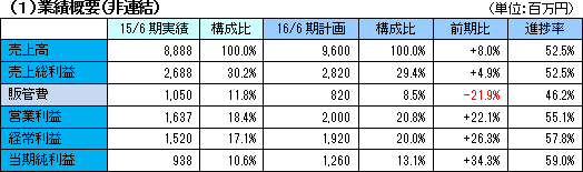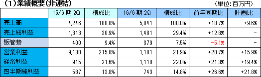 | 2016年6月期第2四半期決算概要 |