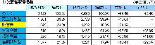 | 2016年3月期決算概要 |
