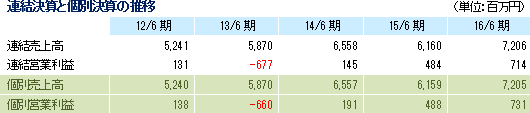 | 項目決算期 | 売上高 | 営業利益 | 経常利益 | 当期純利益 |