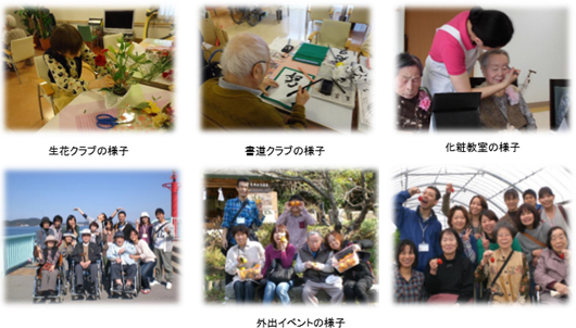 リハビリテーションを重視して、永く、元気でその人らしく、健康に暮らすためのお手伝いをしている。同社におけるリハビリテーションとは、リハビリを頑張れば、将来元気になれる・・・だから頑張るというものではない。今日自分らしく、明日も自分らしく過ごしながら、来月、来年もっと自分自身の力で、自分らしく毎日を過ごす為の準備を行うということを目的としている。 社会参加などを重視しクラブ活動や外出イベントなどを積極的に行っている。 ![]() 【事業セグメント】