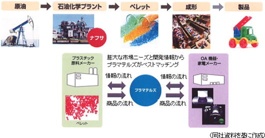 ①合成樹脂市場におけるメーカーとユーザーのベストマッチングを推進する役割を果たす
