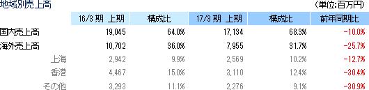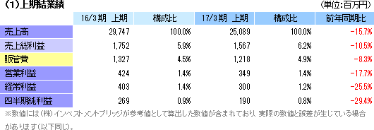 ![]() 前年同期比15.7%の減収、同17.7%の営業減益